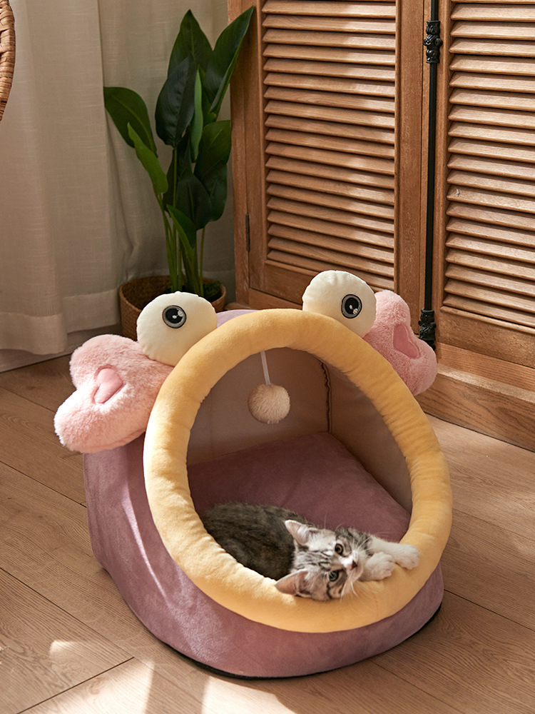Melhore o descanso do seu gato com nossa Cama Universal para Gatos, criada para unir conforto e estilo o ano todo. Esta cama em formato de vila, feita com algodão macio, oferece um refúgio acolhedor para seu amigo peludo, seja no calor do verão ou no frio do inverno. Com opções encantadoras como Caranguejo Rosa e Caranguejo Azul e por fim um Sapinho, ela traz charme à sua casa enquanto seu pet aproveita o aconchego. A capa removível e lavável na máquina torna a limpeza simples e rápida, mantendo o espaço sempre cheiroso e limpo. Disponível em vários tamanhos, ajuste perfeito para gatos de todos os pesos. Explore nossa coleção e dê ao seu gato o cantinho que ele merece!